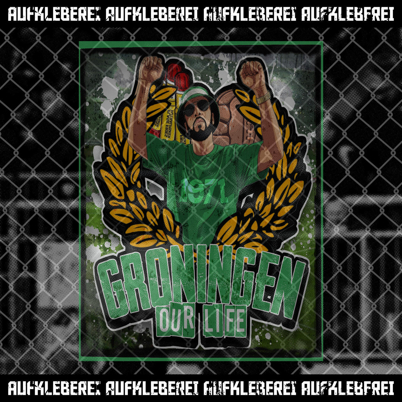 Plak ‘m op je scooter, verkeersbord of stadionmuur – overal waar Groningen thuishoort.